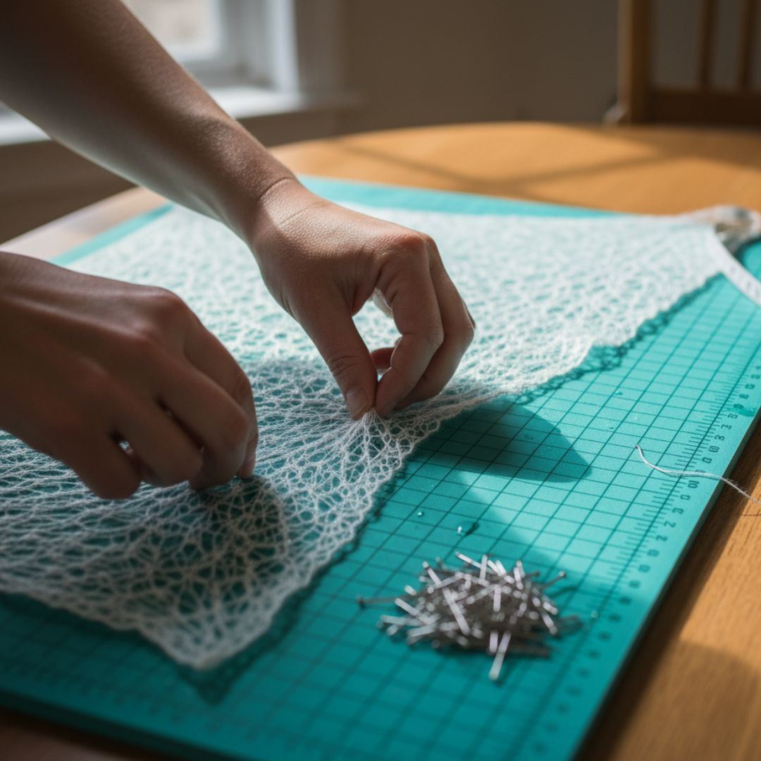 Blocking is perhaps the most critical step when finishing a laceweight project. It is the process that unlocks the true beauty of the lace, turning a seemingly crumpled fabric into an elegant piece. We recommend a gentle soak in lukewarm water with a wool wash. Once gently squeezed, pin the damp project firmly onto the mats, stretching it to open up all the lace holes.